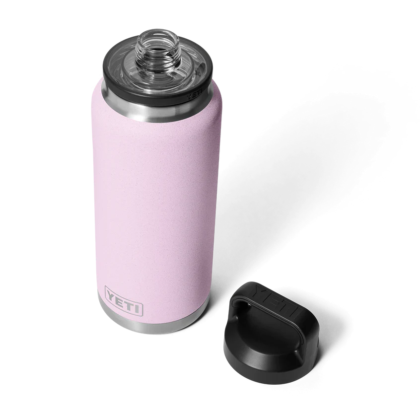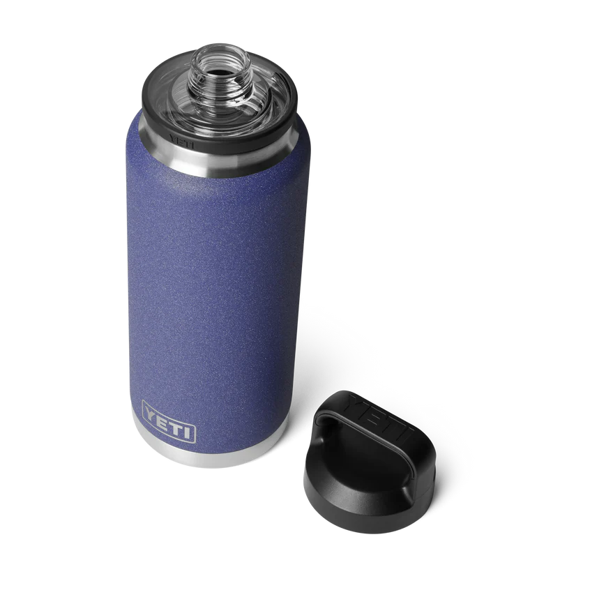 The Rambler® 36 oz. Bottle (1L) is designed for a life in the wild. Scorching days on the ranch and keeping you hydrated through rugged terrain are this bottle's calling, second only to keeping your drinks icy cold (or perfectly hot). For easy cleaning and use day after day, this reusable bottle is dishwasher safe. With a quick twist, the TripleHaul™ handle comes off, exposing our shatter-resistant, dishwasher safe spout that allows for controlled gulps on the go. When it's time for a wash or refill, remove the entire cap to expose the bottle's wide mouth. Find a colour that calls to you – these big bottles are available in stainless, DuraCoat™, and Seasonal finishes.