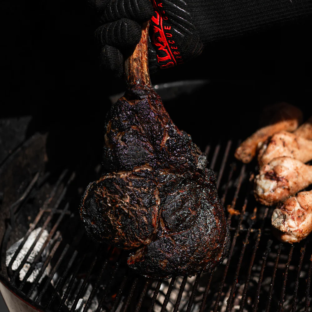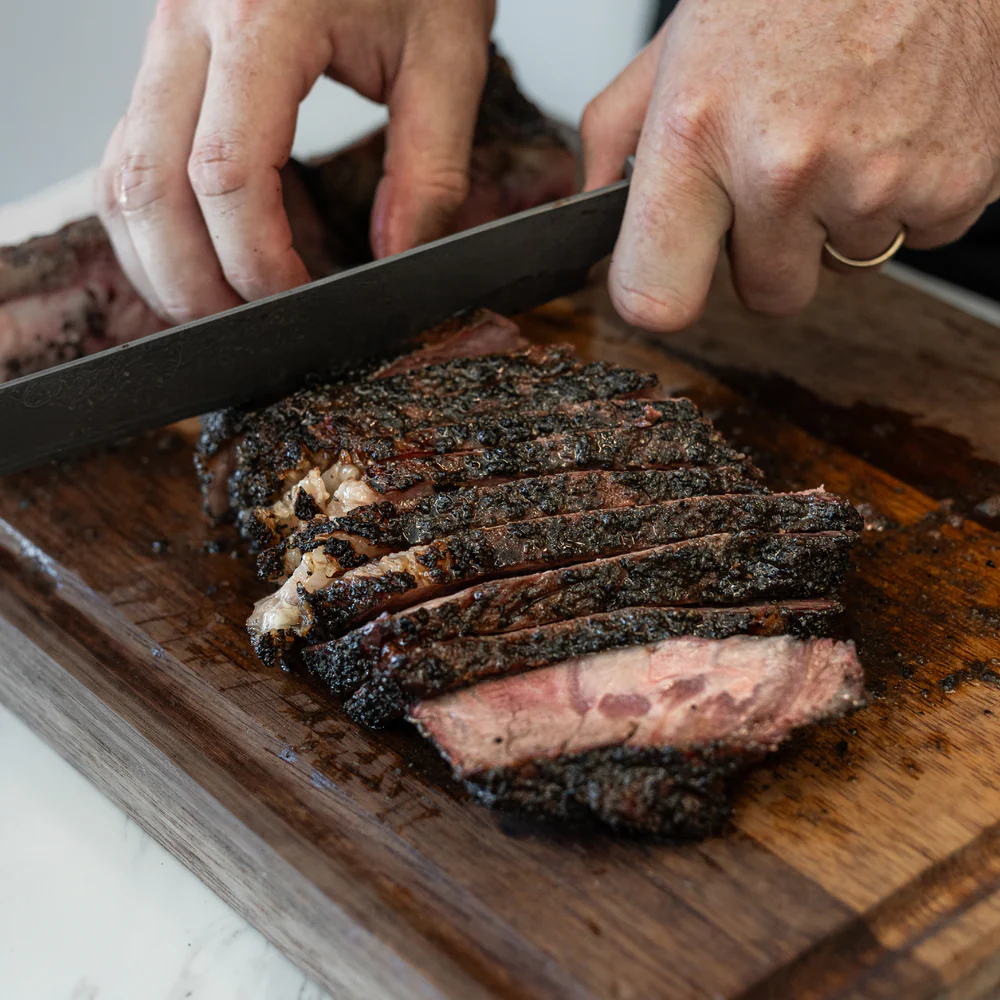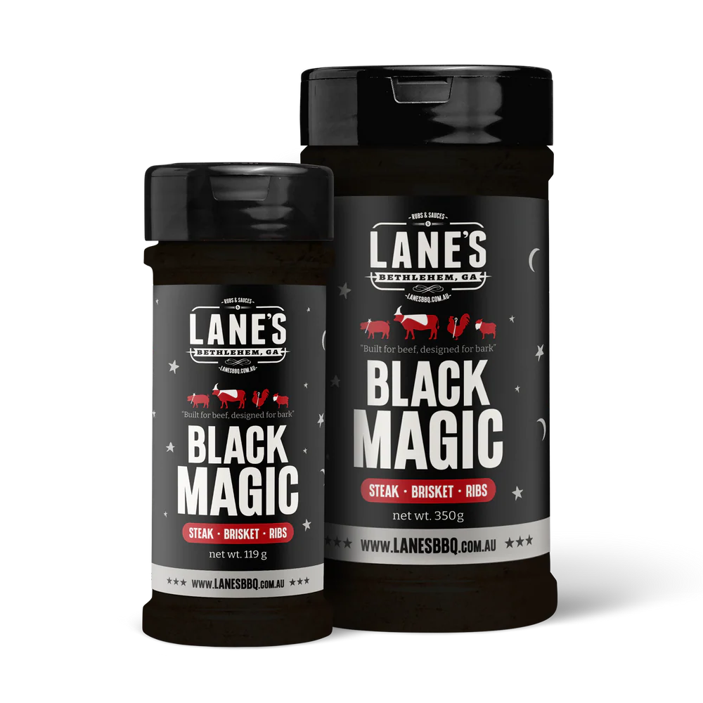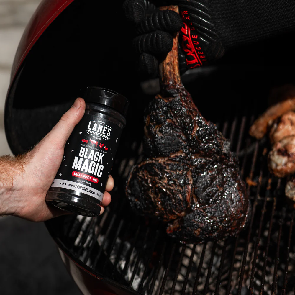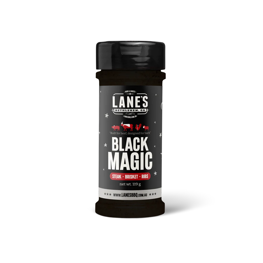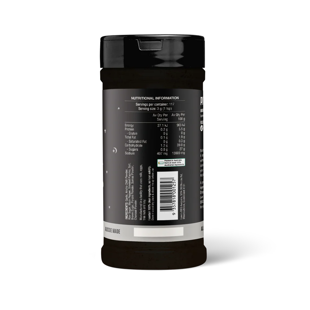 Garlic and ancho chilli lay down a deep, earthy base. Smoked paprika and black pepper bring heat and bite. Raw and brown sugar help build that dark, caramelized crust. Porcini powder drives the umami even deeper. Sumac adds just enough edge to keep it interesting. Charcoal powder locks in that bold, black bark that looks as good as it tastes.