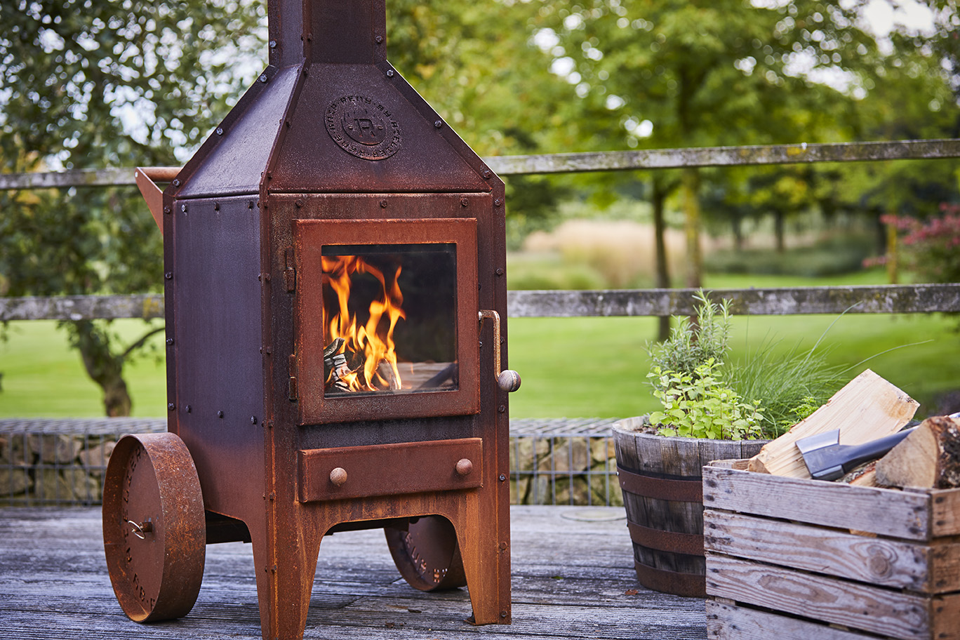 The Bijuga model is a robust CorTen steel outdoor stove. The striking timeless design combines tight lines and surfaces with industrial accents.